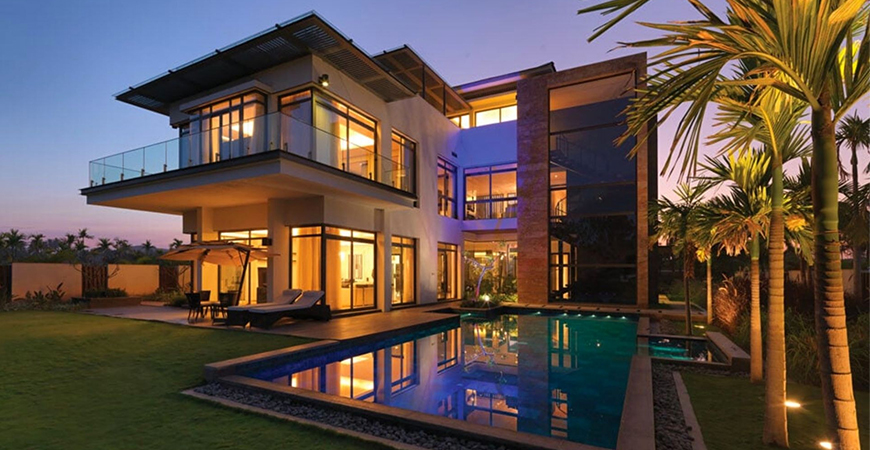 The modern facade of the house can be made of almost any material, as long as the exterior is combined with the right decor.