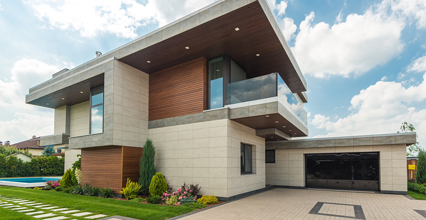 The modern facade of the house can be made of almost any material, as long as the exterior is combined with the right decor.